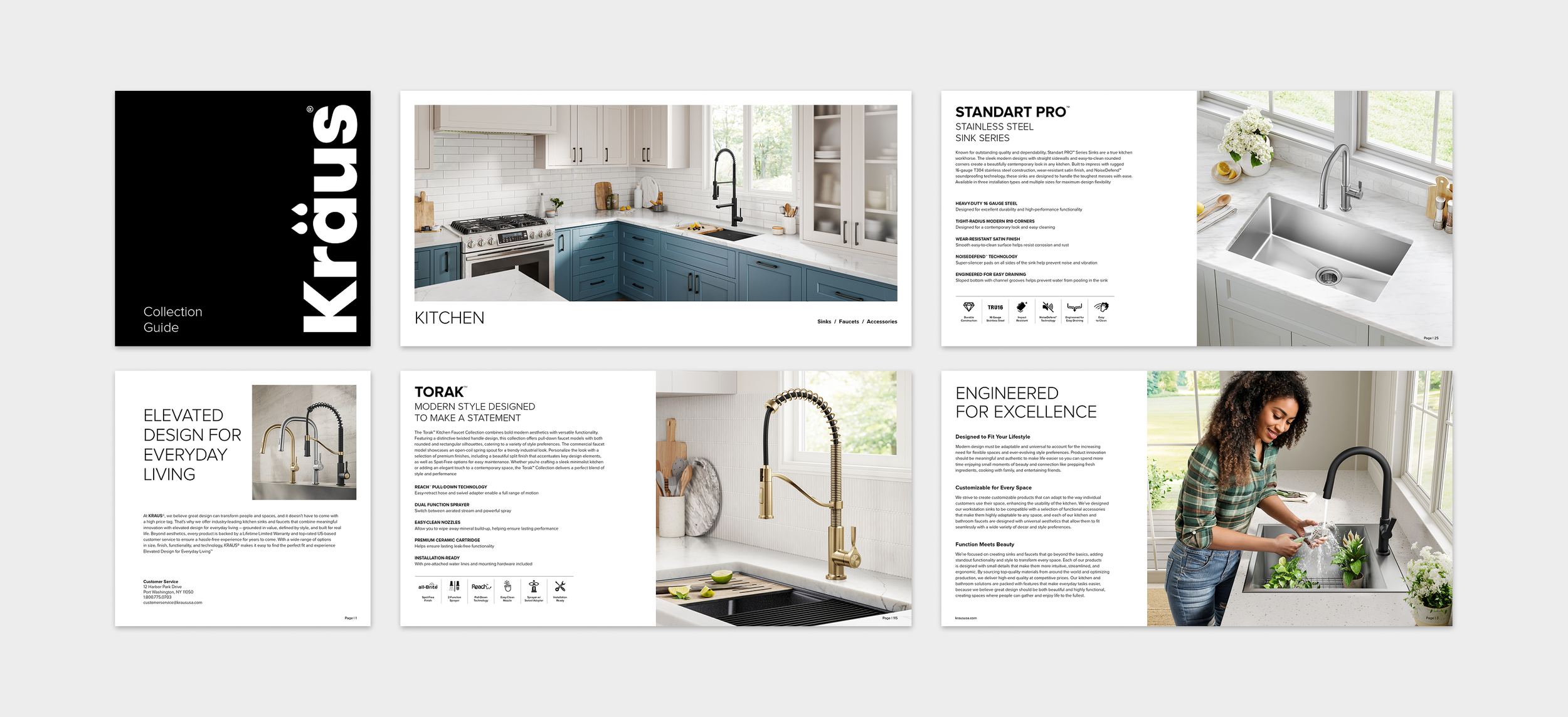 As the design and art direction lead for Kraus at KBIS 2026, I spearheaded the creative execution of a large-scale brand activation attended by top industry thought leaders, retail partners, and design professionals. Working closely with our Brand & Creative Director and an external display agency, I helped shape the vision for this year's experience from the ground up — guiding decisions across floor plan, materials, lighting, color palettes, and product displays to ensure every touchpoint reflected Kraus's brand positioning of Elevated Design for Everyday Living. I owned the end-to-end production of all booth graphics and signage, and extended the brand narrative across a suite of marketing collateral including a printed catalog, press kit, and social media content. The result was a cohesive, design-forward space that reinforced the Kraus promise of premium quality at accessible prices, and set a new standard for how the brand shows up at this annual event.