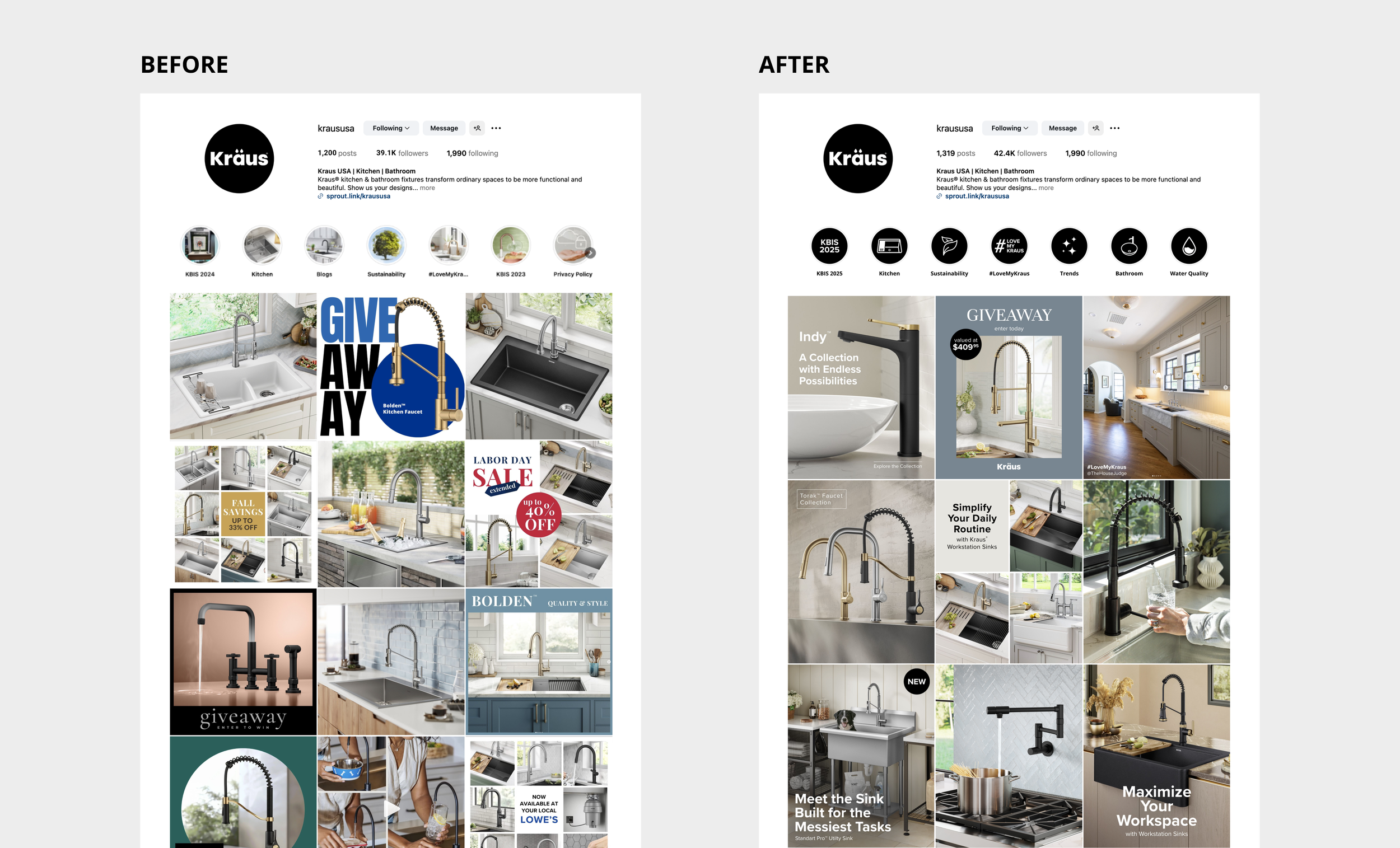 Led a strategic refresh of the brand’s social media presence by providing art direction and refining style guides to create a cleaner, more cohesive visual identity. I developed a new editorial approach with a brand voice tailored to millennial audiences, designed to complement our UGC and image-forward content. Feature-focused posts, design tips, seasonal stories, and new arrival highlights delivered stronger engagement across Meta and Pinterest, generating 1,500+ new Instagram followers in the first two months.